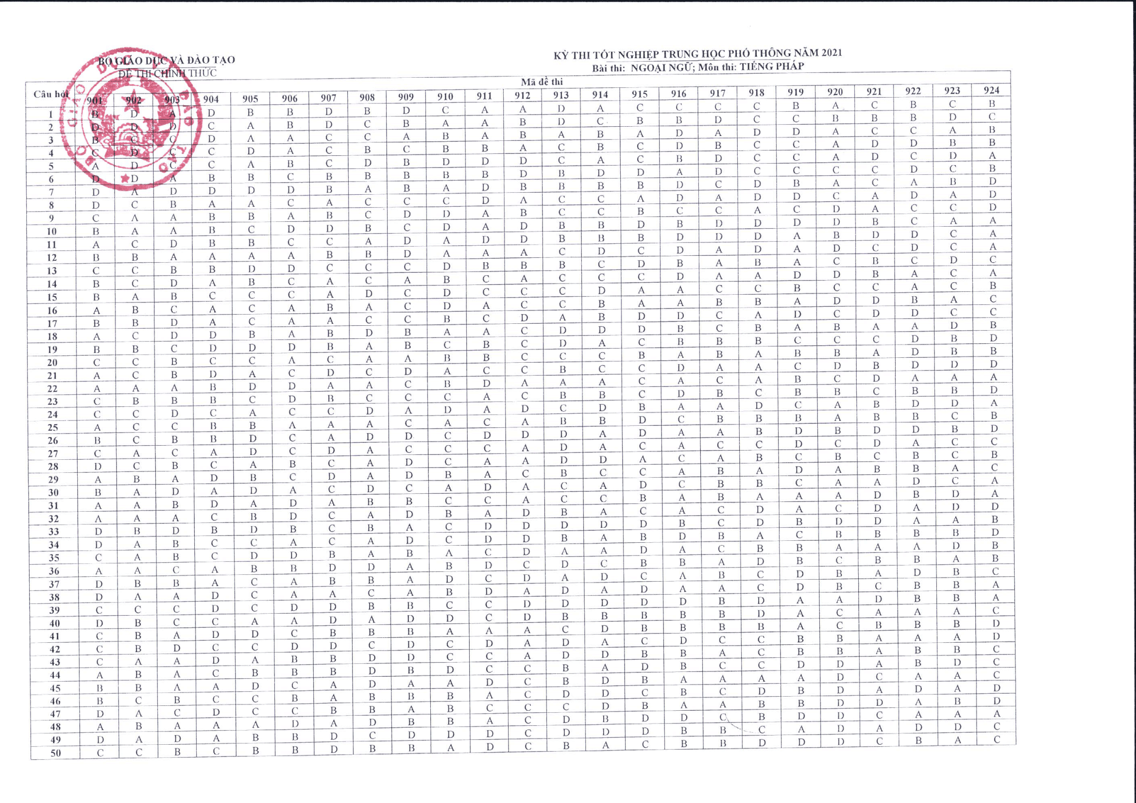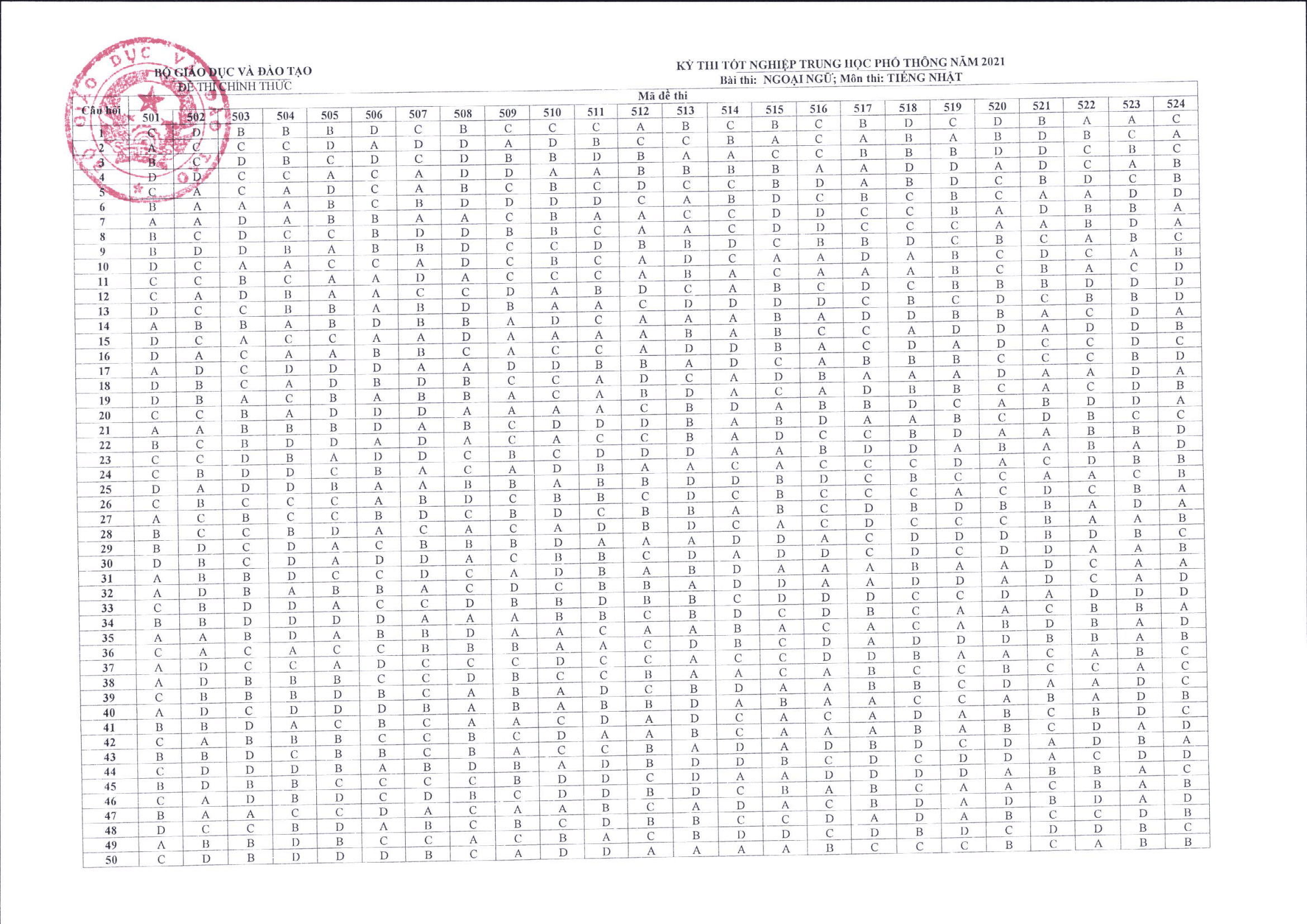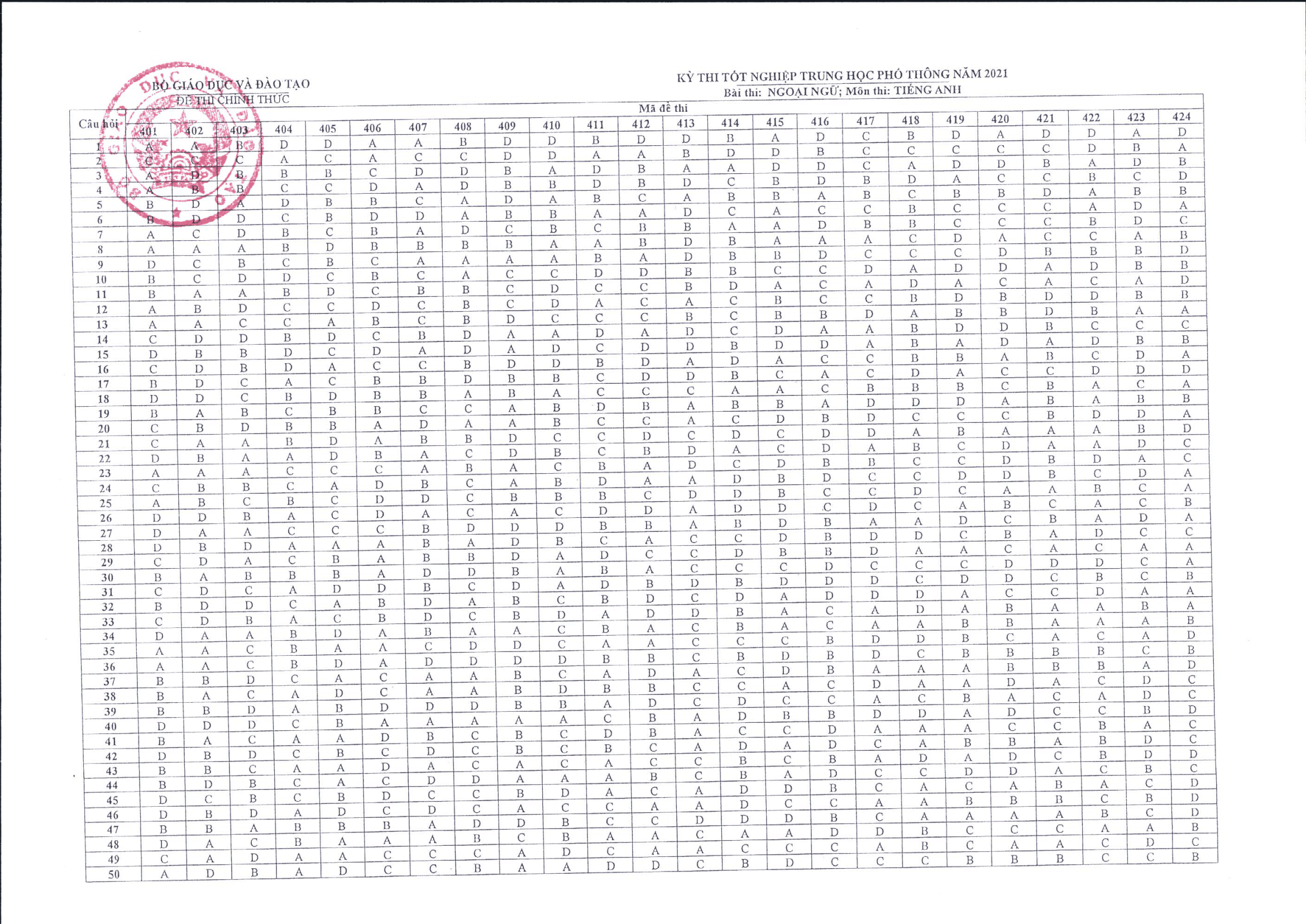 Sáng nay (15.7) , Bộ GD-ĐT đã công bố đáp án các môn thi kỳ thi tốt nghiệp THPT 2021 (đợt 1). Hoan English mời bố mẹ và các bạn học sinh đọc xem toàn bộ đáp án này.