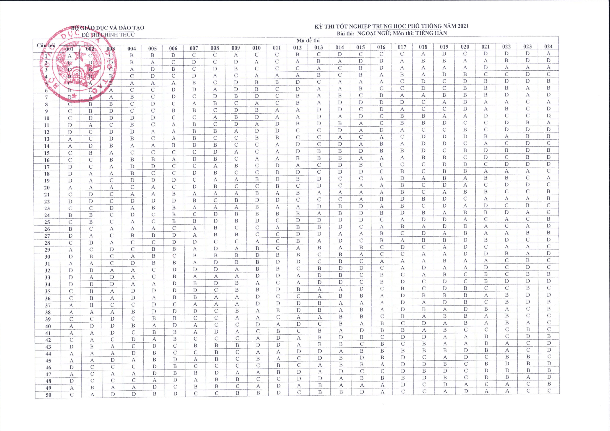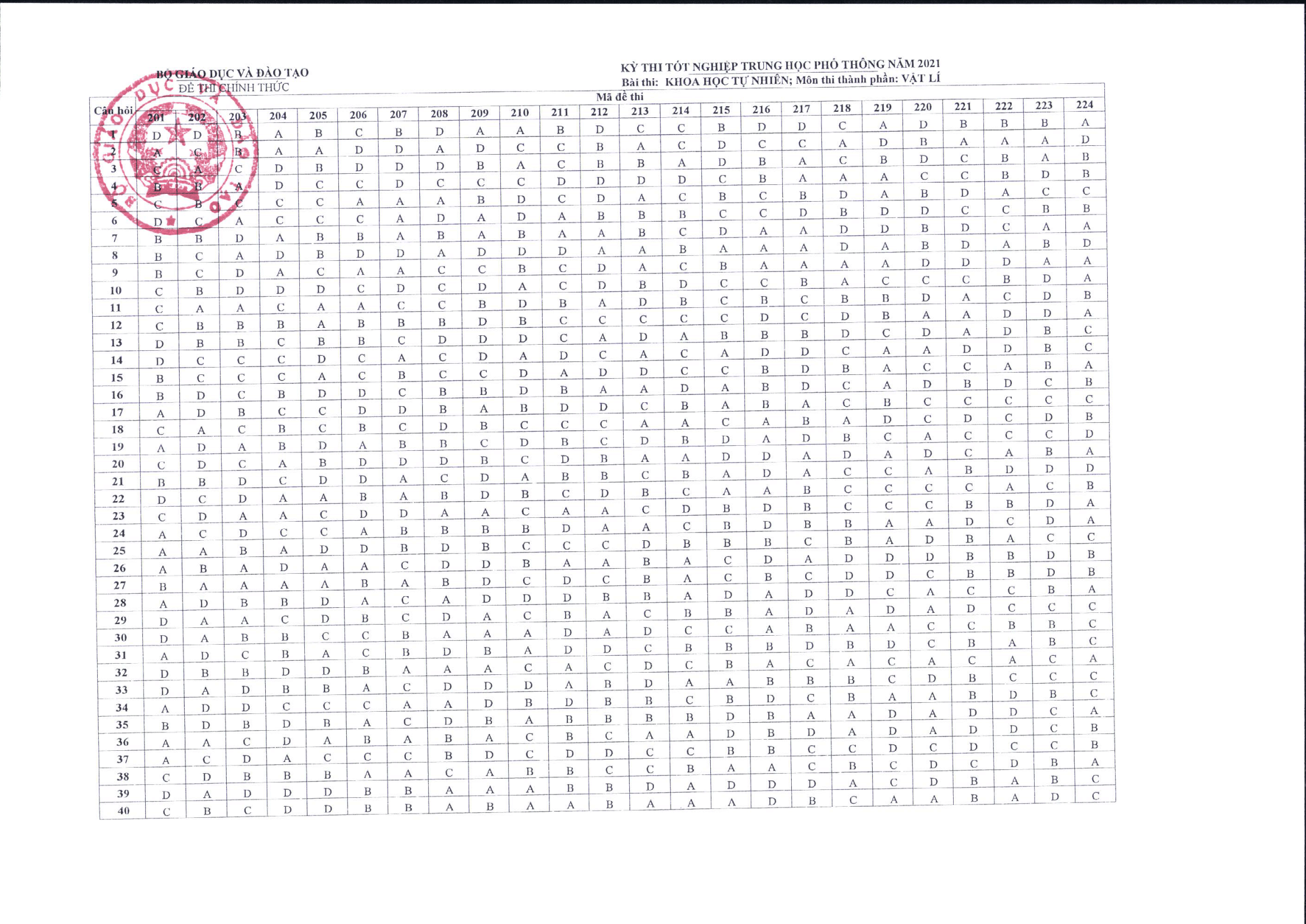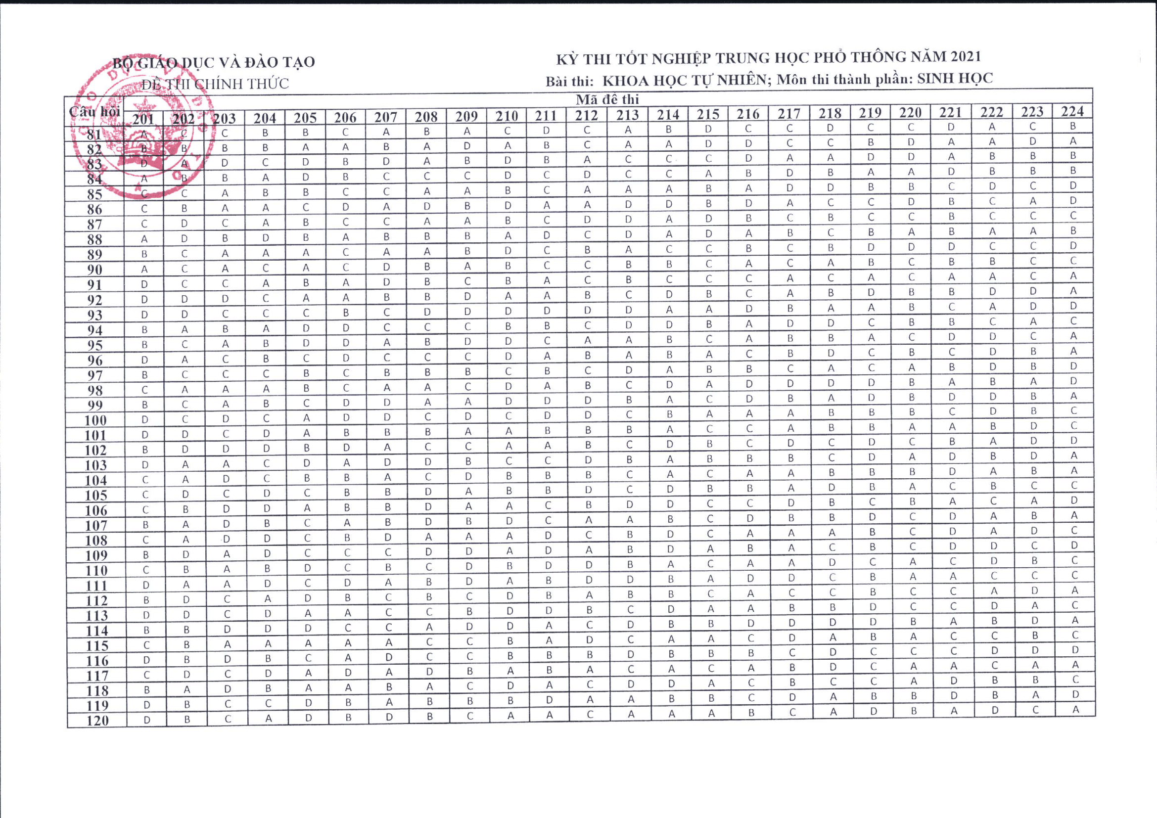 Sáng nay (15.7) , Bộ GD-ĐT đã công bố đáp án các môn thi kỳ thi tốt nghiệp THPT 2021 (đợt 1). Hoan English mời bố mẹ và các bạn học sinh đọc xem toàn bộ đáp án này.