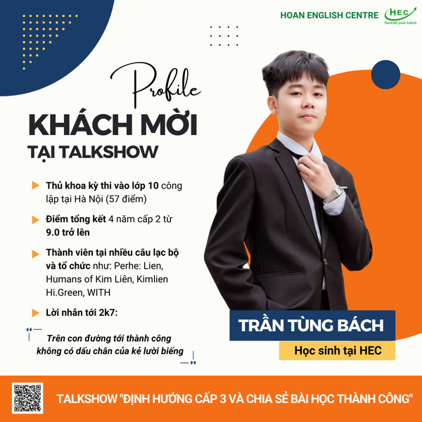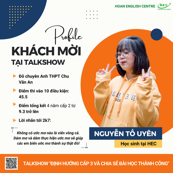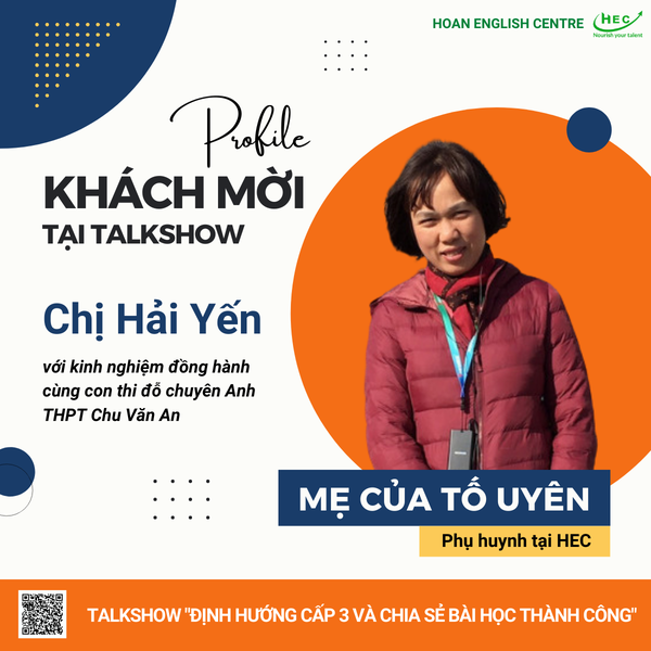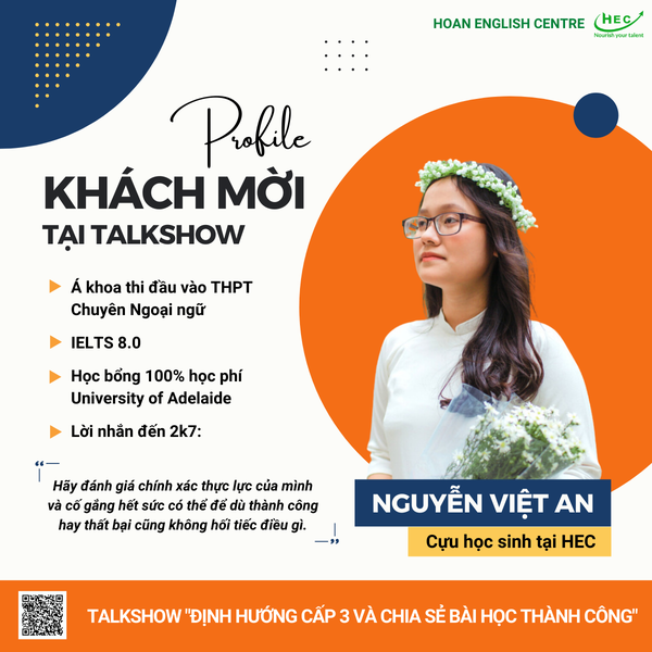 Hoan English tin chắc rằng, những chia sẻ của các vị khách mời này mang tới sẽ chính là hành trang quý báu, là kiến thức vô giá trên chặng đường ôn thi vào lớp 10 nói riêng và hành trình phát triển bản thân nói chung.
