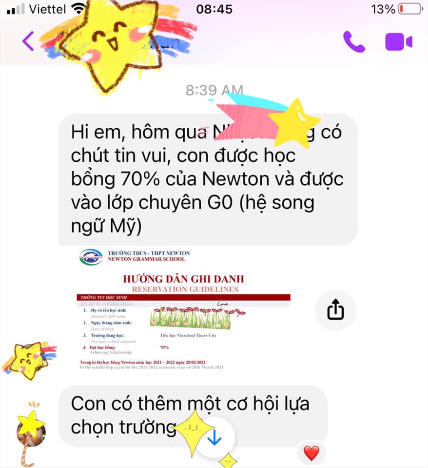 Hoan English vui mừng thông báo các bạn học sinh lớp 5A1 khối chuyên đã đỗ các trường chuyên Archimedes Trung Yên - Ngôi Sao và Newton nhận học bổng 70% hệ chuyên học song ngữ.