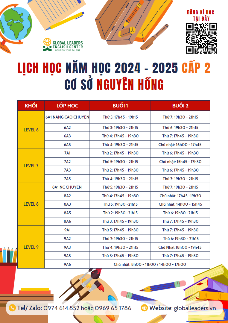 Không có thời điểm nào tốt hơn ngay lúc này để xây dựng nền tảng vững vàng và chinh phục 9+ kì thi vào 10 năm 2025. Đăng ký học ngay cùng cô Hoàn nhé 2k10 ơi. Lịch học và chương trình học cô sẽ để ở dưới để bố mẹ cùng các con tham khảo nhé ạ